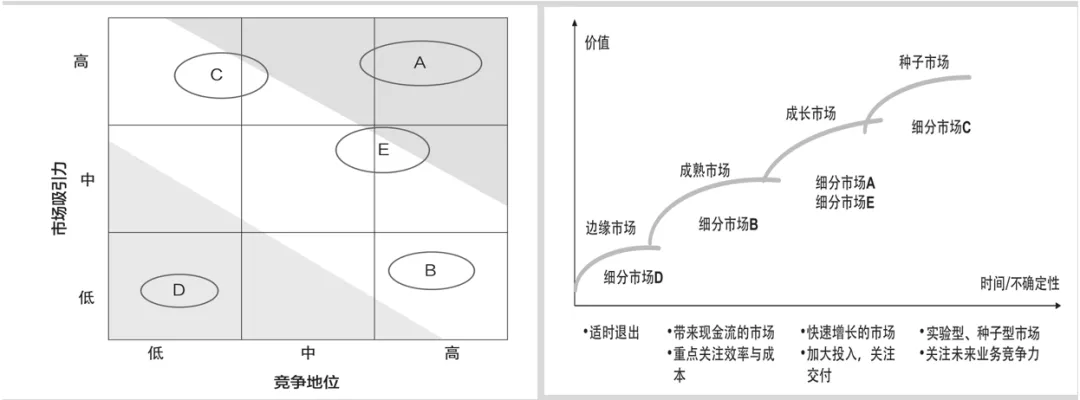 對(duì)于成長(zhǎng)市場(chǎng),由于它是快速增長(zhǎng)的市場(chǎng),則需要加大投入,關(guān)注交付的質(zhì)量。