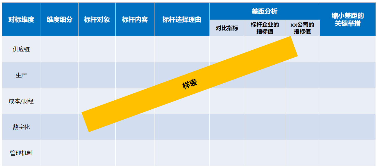 標(biāo)桿管理找差距實(shí)踐樣表參考如下: