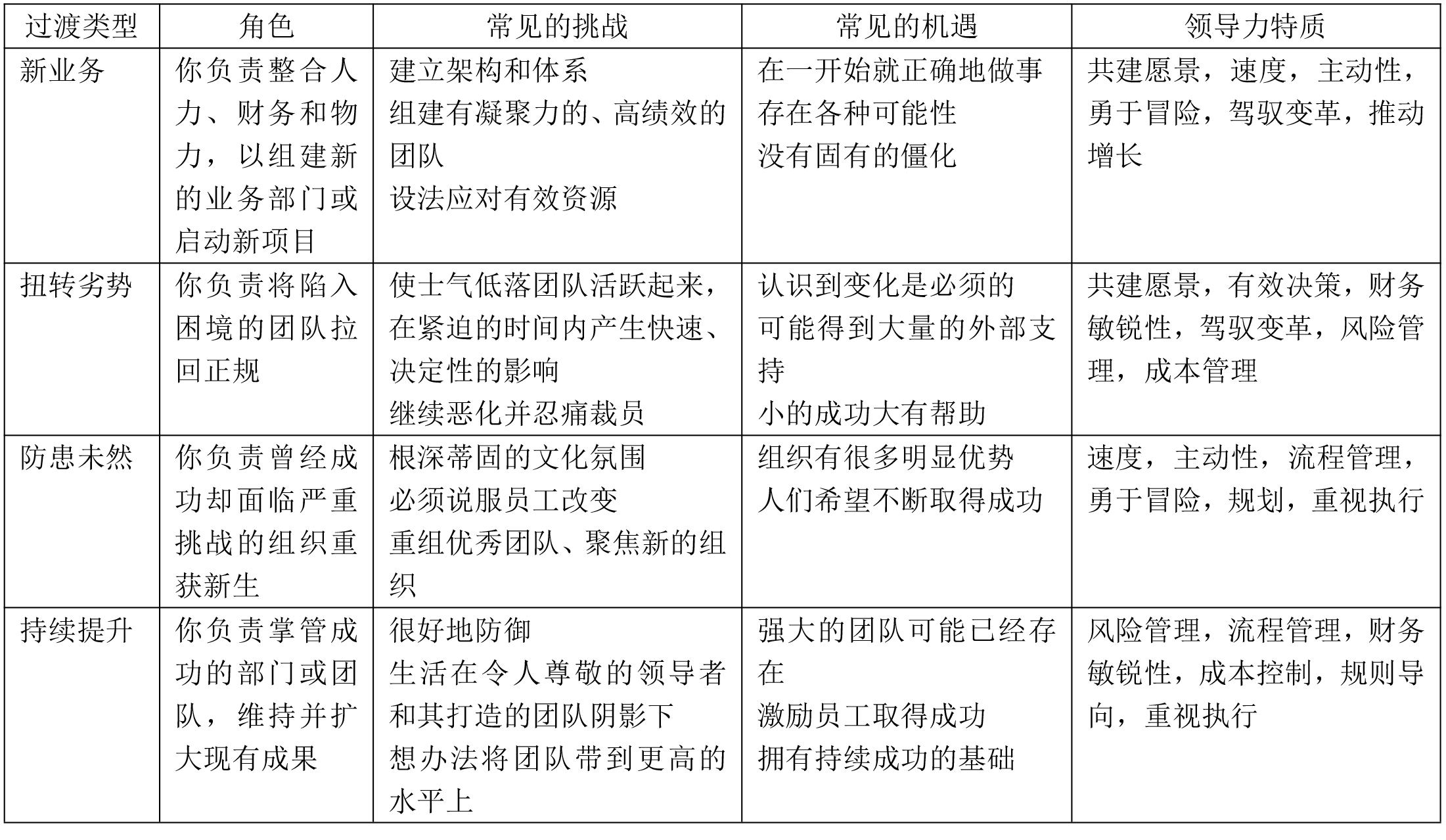 針對四種業(yè)務(wù)過渡類型的挑戰(zhàn)與機(jī)遇